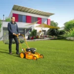 Robustheit, Einsatzsicherheit und eine lange Lebensdauer gewährt die verzinkte Stahl-Mulchglocke mit verstärktem Rand. Zum perfekten Schnittbild tragen die doppelt kugelgelagerten Spezialräder mit spezieller Keilform bei, da sie sehr wenig Gras vor dem Mähwerk niederdrücken. Dadurch ergibt sich ein hervorragendes Schnittbild in fünf verschiedenen Schnitthöhen von (30)40–80mm. Diese lassen sich mühelos per Hand oder Fuß einstellen.