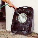 Durch die ausgereifte Abdichtungs-Technologie des HRM 3000 kann dieser mit einem normalen Gartenschlauch gewaschen werden.