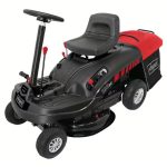 Ein kraftvolle 4-Takt-Benzinmotor mit 196 cm3 und 4,8 kW bzw. 6,5 PS sorgt für ausreichend Leistung. Der integrierte Elektro-Start sorgt für ein einfaches Starten des Aufsitzmähers. Mit nur einem Handgriff lässt sich über die zentrale Schnitthöhenverstellung eine der 5 Schnitthöhen von 35-75 mm auswählen.